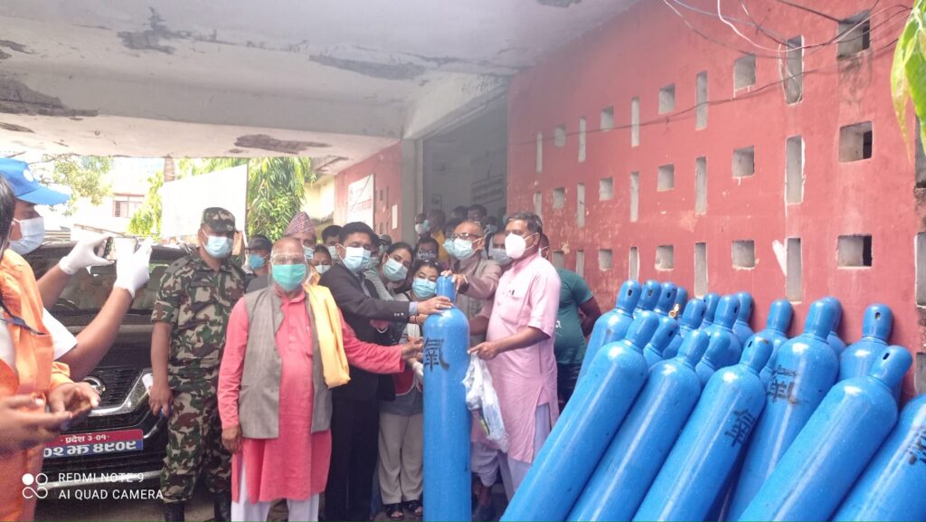धनुषाका सवै स्थानिय तहलाई १ सय अक्सिजन शिलिन्डर हस्तान्तरण