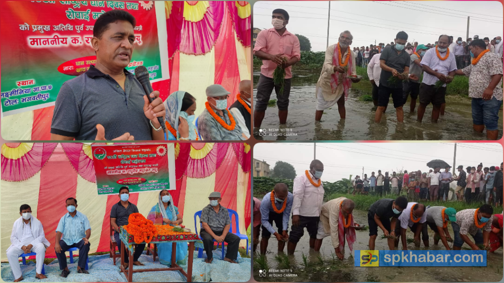 मंगलबार अखिल नेपाल किसान महासंघ जिल्ला कार्य समिति धनुषाद्वारा रोपाइँ महोत्सवको आयोजना गरिएको थियो । कार्यक्रममा पूर्वमन्त्री महासेठले सम्बोधन गर्दै किसानको संख्या केही घटेको र अब ९५ प्रतिशत नरहेको उनले बताए । नेपालमा किसानका लागि सिचाइको व्यवस्था उनत जात बीउ मलको व्यवस्था हुनुपर्नेमा जोड दिएका छन ।