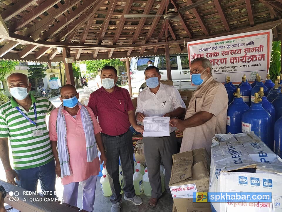 करिब १५ लाख बराबरको अक्सिजन शिलिन्डर लगायत फेस शिल्ड, मास्क, सेनिटाइजर, सहित विभिन्न स्वास्थ्य उपयोगी समाग्री जलेश्वर नगरपालिकाका मेयर र जिल्ला समन्वय समिति अधिकारीको रोहवरमा हस्तान्तरण गरिएको रतौली युवा क्लवका कार्यकारी प्रमुख बैद्यनाथ चौधरीले बताए ।