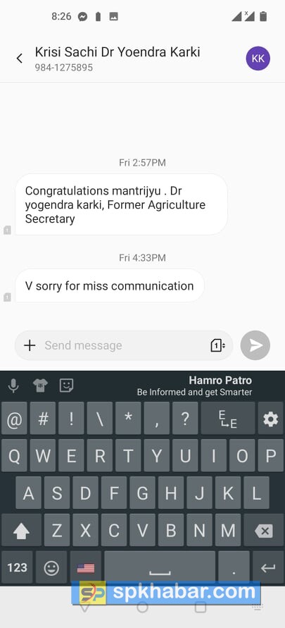 उनीहरुलाई राजनितिक दलका नेता मात्र होइन कुटनितिक नियोग र कर्मचारीहरुले समेत धमाधम मन्त्री भन्दै फोन र एसएमएसका माध्यमले बधाई दिन थाले । त्यसै क्रममा पुर्व कृषि सचिव डा. योगेन्द्र कार्कीले बधाई मन्त्री जि भन्नै मन्त्री परिषद विस्तार भएको दिन गत शुक्रवार दिउँसो २ बजेर ५७ मिनेटमा सांसद साहलाई म्यासेज गरे । तर साहलाई सपथ ग्रहणका लागि कुनै जानकारी नआएकाले उनले खेला हुने सोचिरहेका रहेछन् ।