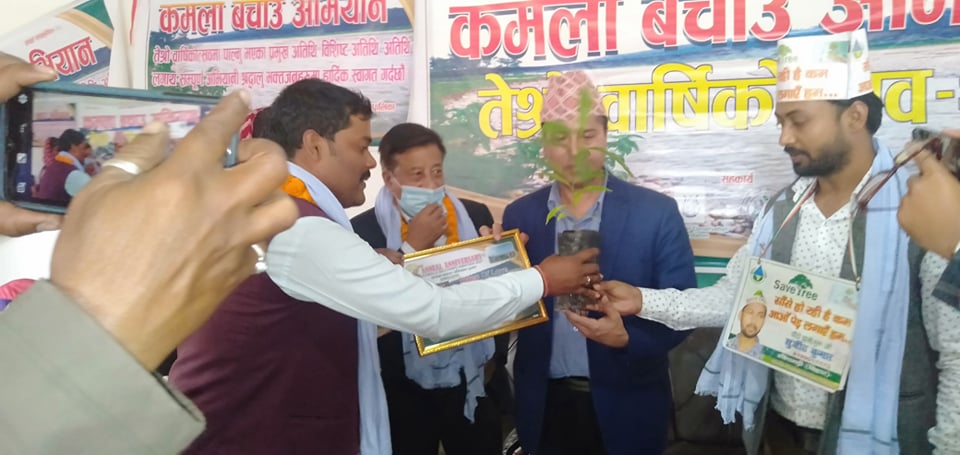 जनकपुरधाम, मसिंर २ : कमला नदीको संरक्षण सम्वद्वर्नका लागि विगत तिन वर्ष देखि जारी कमला बचाउ अभियानले आफनो तेस्रो वार्षिकोत्सव मनाएको छ । समुदघाटन तथा अन्तरक्रिया तथा सम्मान तथा समापन गरि दुई चरणमा आयोजित तेस्रो वार्षिकोत्सव कार्यक्रममा वक्ताहरुले कमला बचाउने अभियान एक नदीका लागि मात्र नभई धार्मिक, सांस्कृतीक महत्वको धरोहरका साथै स्थानियको जिवन र समाज समेत बचाउनु भएकाले राज्यको ठोस निति समेत आउनु आवयश्क रहेको बताए ।