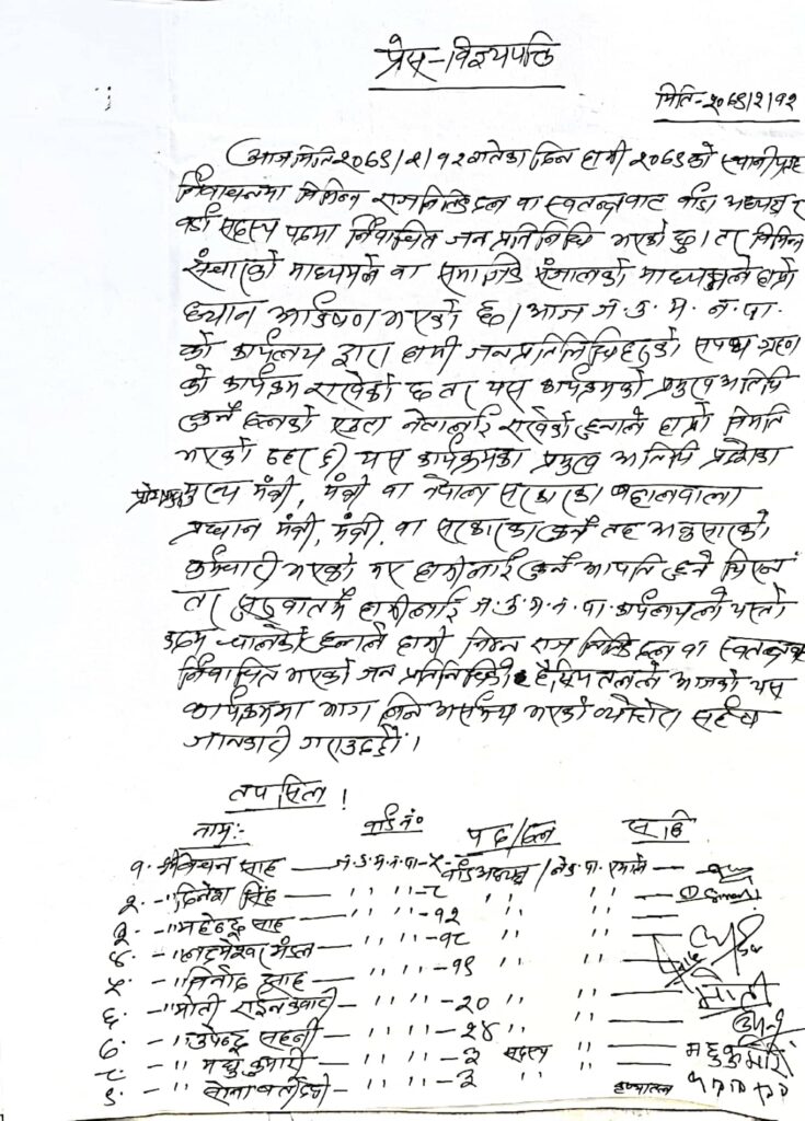 नेकपा एमालेबाट वडा अध्यक्षमा निर्वाचित सातजना वडा अध्यक्षहरु सहित कुल ३६ जना वडाका जनप्रतिनिधीहरु निधी सहभागी कार्यक्रममा सपथ ग्रहण नगर्ने भन्दै बहिष्कार गरेका हुन । एमालेबाट निर्वाचित वडा अध्यक्षहरुले एक स्वरमा भने, ‘आफुलाई स्वतन्त्र भनेर चुनाव जित्ने अनि जित्ने वितिकै एक पार्टी र केहि नेताको इशारामा चल्ने नयाँ मेयरको कार्यशैली आपतीजनक छ ।’