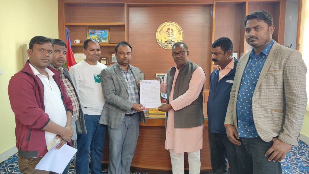 जनकपुरधाम, मसिंर १९ : जनकपुरधामका उद्योगी व्यवसायीहरु विभिन्न सात सुत्रिया मांग राख्दै जनकपुरधाम उपमहानगरपालिकाका प्रमुख मनोज कुमार साहलाई ज्ञापन पत्र बुझाएको छ । जनकपुरधाम उपमहानगरपालिकाको प्रशासनिक कार्यक्षेत्र समेतमा पर्ने गरी व्यापार, व्यवसाय र उद्योग स्थापना गरी कारोवार गर्ने व्यवसायीहरु नेपाली नागरिक रहेको ध्यानाकर्षण गराउदै एक सचेत स्थानिय बासी भएको नाताले स्थानिय सरकारको प्रत्येक गतिविधिको सम्बन्धमा सकारात्मक टिप्पणी र खवरदारी गर्ने आफुहरुको नैतिक कर्तव्य रहेको व्यवसायीहरुको ज्ञापन पत्रमा उल्लेख छ ।