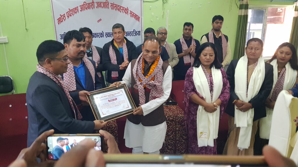 नेपाल आदिबासी जनजाति पत्रकार महासंघ मधेश प्रदेशको आयोजनामा जनकपुरधाममा भएको मधेश प्रदेशका आदिबासी जनजाती सांसदहरुको सम्मान तथा आदिबासी जनाजाती पत्रकारहरुको सवाल विषयक कार्यक्रमलाई सम्बोधन गर्दै सभामुख मण्डलले राज्यले संख्या र मतको आधारमा अवसर दिने गरेको स्मरण गराउदै त्यसै अनुसारको तयारी गर्न आग्रह गरे ।