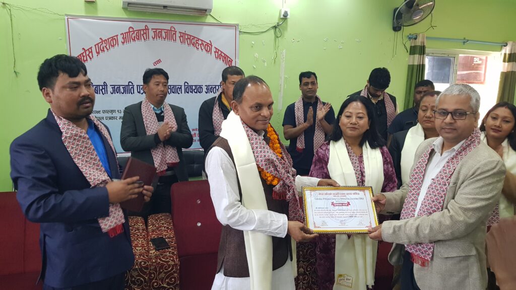 कार्यक्रममा सभामुख मण्डल सहित सांसदहरु, प्राधिकरणका अध्यक्ष, नेपाल पत्रकार महासंघ धनुषा शाखालाई सम्मान गरिएको छ ।