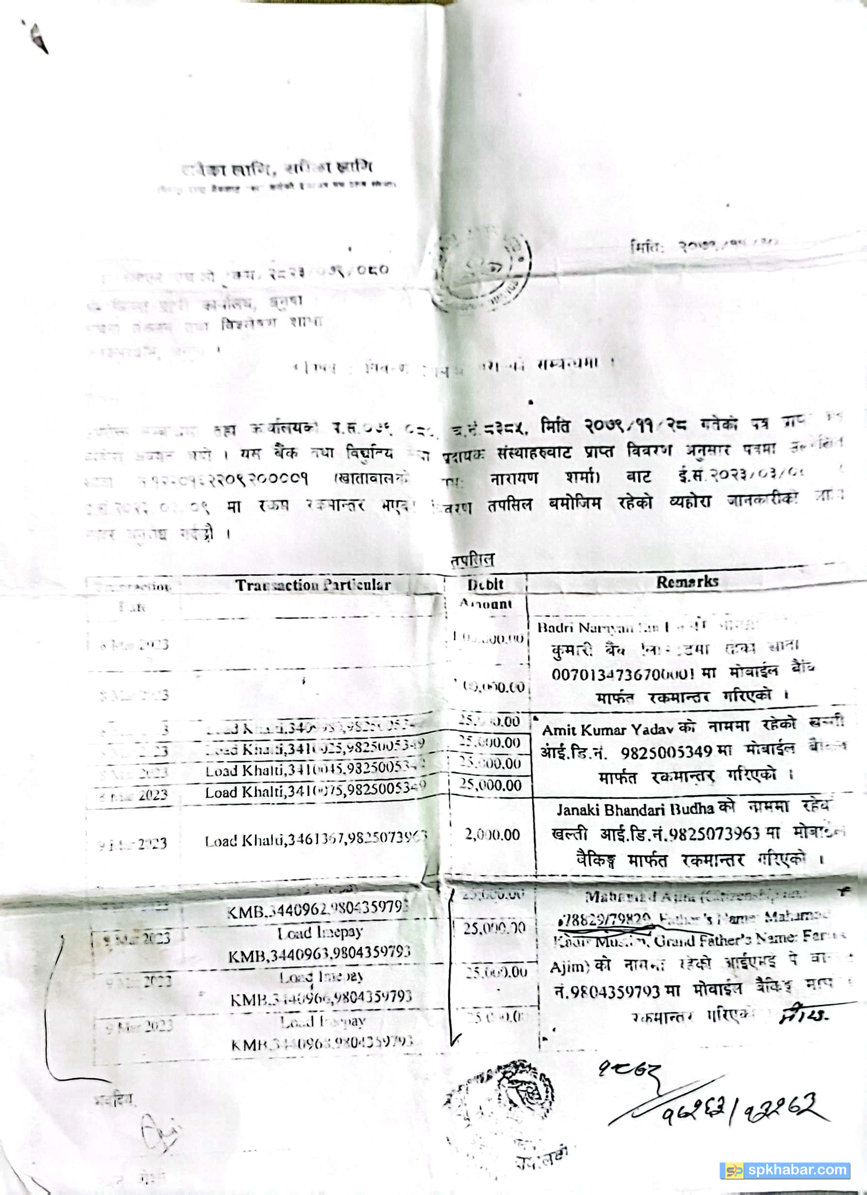 जनकपुरधाम वडा नम्बर १९ शिवपुरका नारायण शर्माले आफूले कुमारी बैंकमा जम्मा गरेको चार लाख रुपैयाँ खाताबाट गायब भएको आरोप लगाएका हुन् । शर्मा गत फागुन २२ गते बैंकमा ४ लाख रुपैयाँ जम्मा गरेका थिए । होलीको बिदा रहेका बेला २४ र २५ गते पटक-पटक गरी खल्ती र आईएमई पे नामक बैंकिङ एप्समार्फत् रकमान्तर भएको बैंकले उपलब्ध गराएको स्टेटमेन्टमा देखिएको छ । अमितकुमार यादव नाममा रहेको खल्ती आईडी नम्बरबाट २५-२५ हजारका दरले रकम झिकिएको देखिएको छ । त्यस्तै, जनक भण्डारी बुद्धको नाममा रहेको खल्तीकै आईडीबाट पनि रकम भिकिएको छ । त्यसैगरी आईएमई पे नामक एपमार्फत् पनि रकमान्तर भएको छ । आफ्नो रकम फिर्ताका लागि बैंकले खासै ध्यान नदिएको शर्माको गुनासो छ । त्यस्तै, जिल्ला प्रहरी कार्यालयमा निवेदन दिए पनि त्यहाँबाट समेत कुनै दतारुकता नदेखाइएको उनले बताएका छन् ।