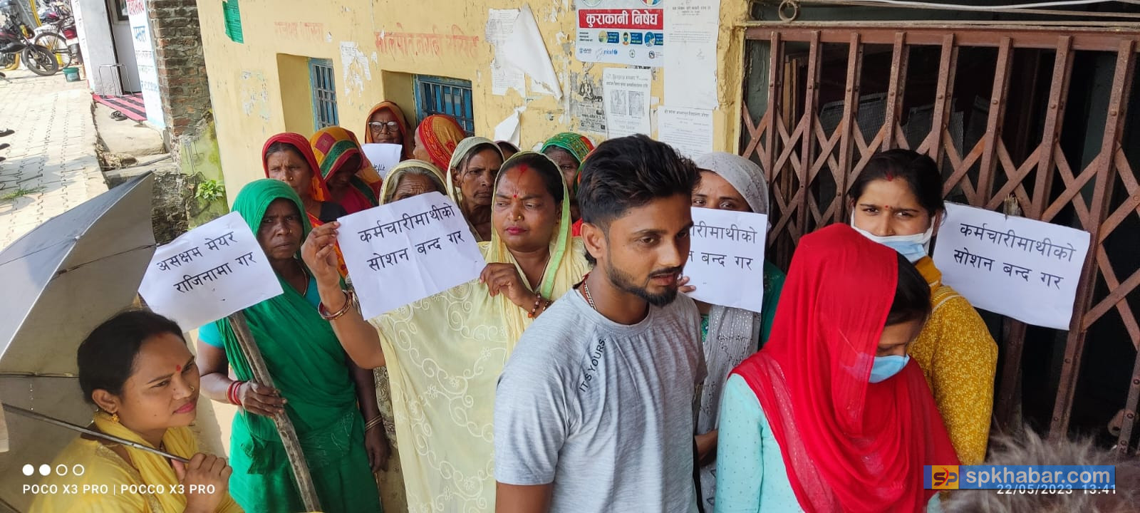 उनले नगर प्रमुख सुखदेव यादव र प्रमुख प्रशासकिय अधिकृत सिवेन्द्र मण्डल मिलेर फरक आस्था भएका कर्मचारीलाई बिनाकारण हटाइएकोप्रति ध्यानाकर्षण गराउँदै माग पूरा नभएसम्म तालाबन्दी यथावत् राख्ने बताए ।