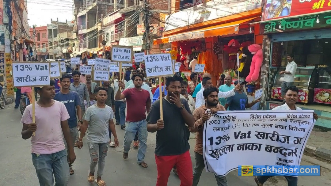 जनकपुरधामको पेठिया बजारबाट निकालिएको जुलुश जनक चोकमा पुगेर कोणसभामा परिणत भएको थियो । व्यापारीहरुले जुलुशमा आलु प्याजमा लगाइएको कर फिर्ता गर, खुल्ला सीमा नाका बन्द गर लगायतका नारा लगाएका थिए ।
