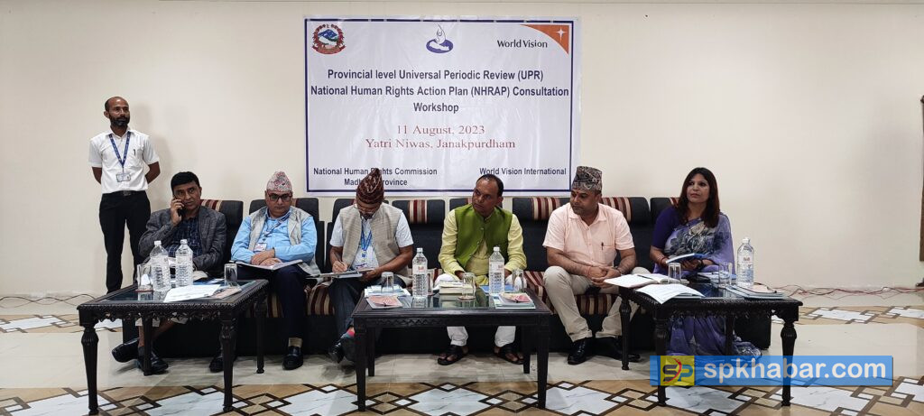 सभामुख मण्डलले राष्ट्रिय मानव अधिकार आयोगको मधेश प्रदेश कार्यालयले जनकपुरधाममा आयोजना गरेको प्रदेश स्तरीय “मानव अधिकारको विश्वव्यापी आवधिक पुनरावलोकनबाट प्राप्त सिफारिस र पाँचौँ राष्ट्रिय कार्ययोजना” सम्बन्धि छलफल कार्यक्रममा संविधानमा उल्लेखित मौलिक हकहरूको कार्यान्वयन गर्नका लागि तीनै तहका सरकार मिलेर काम गर्ने तर्फ ध्यान दिनुपर्नेमा जोड दिए ।