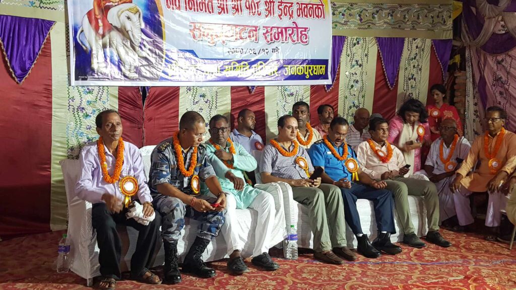 जनकपुरधाम, असोज १२ : जनकपुरधामको मिल्स एरियामा प्रत्येक वर्ष जस्तै देवराज भगवान ईन्द्रको पुजापाठ र मेला आयोजना गरि ईन्द्र पुजा मनाइदै छ । स्थानिय श्री ईन्द्र पुजा समिति मिल्स एरियाको आयोजनामा प्रत्येक वर्ष लाग्ने ईन्द्र पुजा यस वर्ष समितिको आफनै निर्मित नयाँ भवनमा मनाईदै छ । समितिले शुक्रवार एक विशेष समारोहको आयोजना गरि समितिकोे भवन र ईन्द्रपुजा तथा मेलाको समुदघाटन गरेको छ ।