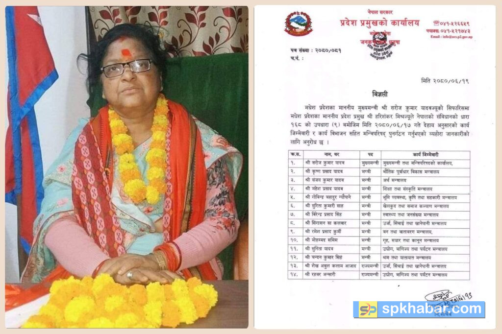 जनमतका मधेश यादवले सम्हाल्दै आउनु भएको शिक्षा तथा समाज कल्याण मन्त्रालयलाई टुक्रयाएर सुरिता साहलाई मन्त्रालयको जिम्मेबार दिइएको हो । अब यादवले शिक्षा तथा संस्कृति मन्त्रालयको जिम्मेबारी पाउनु भएको छ भने भने सुरिताले टुक्रयाएर बनाइएको खेलकुद तथा समाज कल्याण मन्त्रालयको जिम्मेबारी पाउनु भएकी हुन् ।