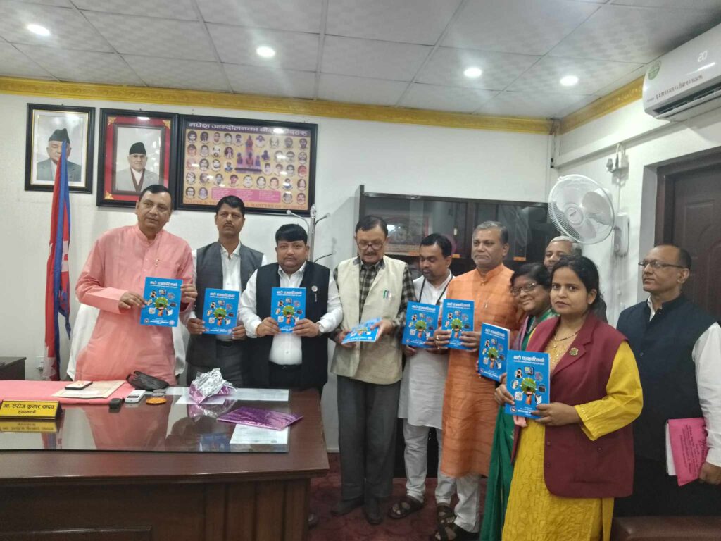 जनकपुरधाम, कात्तिक ३ : मधेश प्रदेशका मुख्यमन्त्री सरोज कुमार यादवले मधेश प्रदेशका पत्रकारहरुलाई दक्ष बनाउनका लागि विभिन्न किशिमका तालिम गोष्ठीको आयोजना गर्नका लागि आमसञ्चार प्राधिकरण मधेश प्रदेशलाई निर्देशन दिनु भएको छ । आमसञ्चार प्राधिकरण मधेश प्रदेशको सहयोगमा नेपाल पत्रकार महासंघका पूर्व केन्द्रिय अध्यक्ष एवम वरिष्ठ पत्रकार धर्मेन्द्र झाद्धरा लिखित पत्रकारिता प्रशिक्षण सम्बन्धी एकीकृत स्रोत पुस्तकको शुक्रबार मुख्यमन्त्री कार्यालयमा विमोचन गर्दै उहाँले यस्तो बताउनु भएको हो ।
