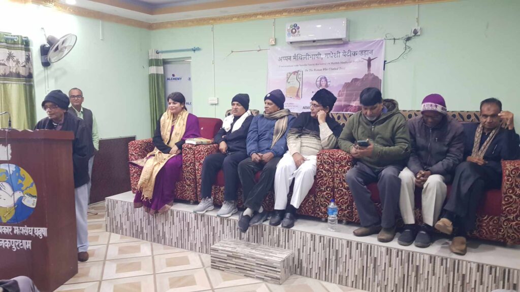जनकपुरधाम, पुष १४ : धनुषा सबैलाकी छोरी उपन्यासकार ‘स्मृती रविन्द्रा’ले खेलेको चर्चित उपन्यास पुस्तक ‘द वुमन हु क्लाईम्ड ट्रिज’ नोवेलको मधेशको राजधानी जनकपुरधाममा पनि लोकापर्ण गरिएको छ । भारत सहित अमेरिका, ब्रिटिश लगायतका अन्तराष्ट्रिय स्तरमा समेत ख्याती कमाई सकेको यस पुस्तकको एक कार्यक्रमका बिच जनकपुरधामका विद्वानहरुका बिच सार्वजानिक गरिएको छ ।