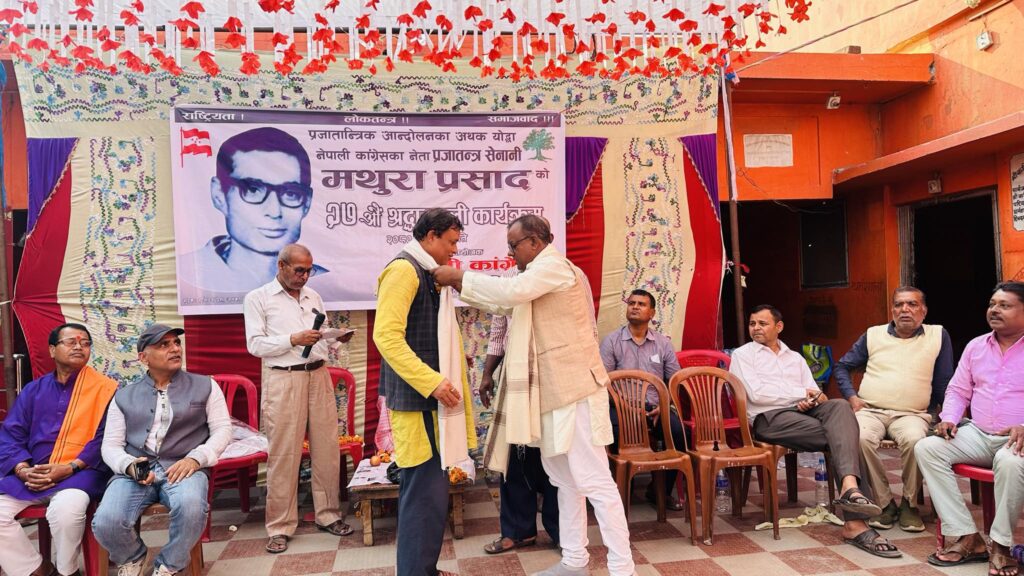 जनकपुरधाम, चैत १६ : नेपालको लोकतान्त्रिक आन्दोलनका एक अविस्मरणीय योद्धा प्रजातन्त्र सेनानी मथुरा प्रसाद उपाध्यायको २७ औं पुण्यतिथि विभिन्न कार्यक्रम गरि मनाइएको छ । सो अवसरमा शुक्रवार विहान जनकपुरधामको श्री जानकी वृद्वाश्रममा नेपाली कांग्रेस जनकपुरधाम उपमहानगरपालिका वडा नं. ११ ले फलफुल सहितको राहत समाग्री वितरण गरेको छ ।