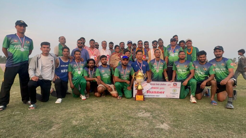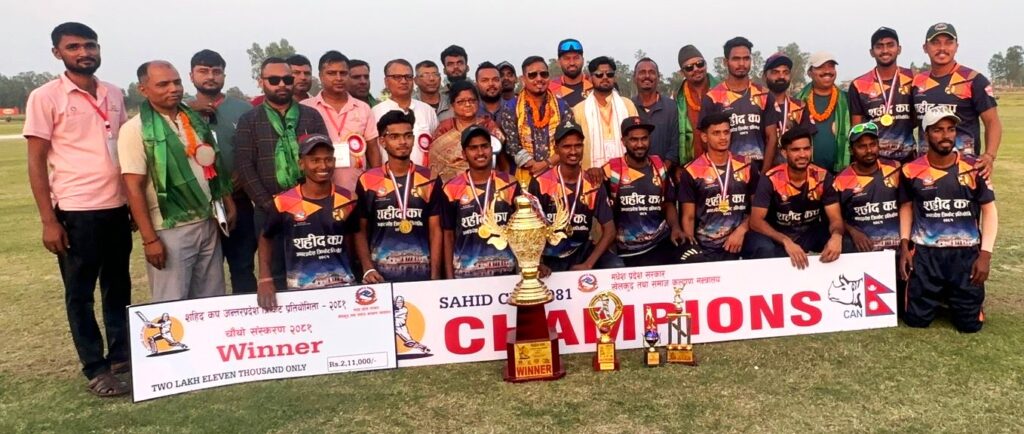 जनकपुरधाम, बैशाख २८ : जनकपुरधाममा विगत ९ दिन देखि जारी शहिद कप अन्तर प्रदेश टि–२० क्रिकेट प्रतियोगिता २०८१ को उपाधि आयोजक जनकपुर–११ ले जितेको छ । सुदूरपश्चिमलाई ७ विकेटले पराजित गर्दै जनकपुर ११ ले उपाधि जितेको हो । यस संगै प्रतियोगिता आज सम्पन्न भएको छ । पहिला ब्याटिङ्ग गरेको सुदूरपश्चिम प्रदेशले १४ ओभरको खेलमा सबै विकेट गुमाएर ९० रन मात्र बनाएको थियो । जनकपुर–११ ले १५ ओरमा ३ विकेटको क्षतिमा ९४ रन बनाउँदै उपाधि जित्न सफल भएको हो ।