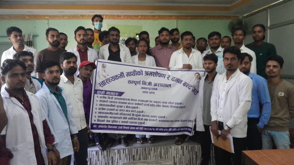 श्रम शोषण तथा असमान व्यवहार भईरहेकाले आफूहरुले उठाएको माग पूरा नभए कार्तिक १६ गते अस्पताल खाली गरेर शान्तिपूर्ण आन्दोलनमा उत्रिने स्वास्थ्यकर्मी नवेश अधिकारीले चेतावनी दिनुभयो । उहाँले मन्त्रालयबाट पटक–पटक सूचना जारी भए पनि निजी अस्पतालहरूले त्यसको कार्यान्वयन नगरेको आरोप समेत लगाउनु भयो ।