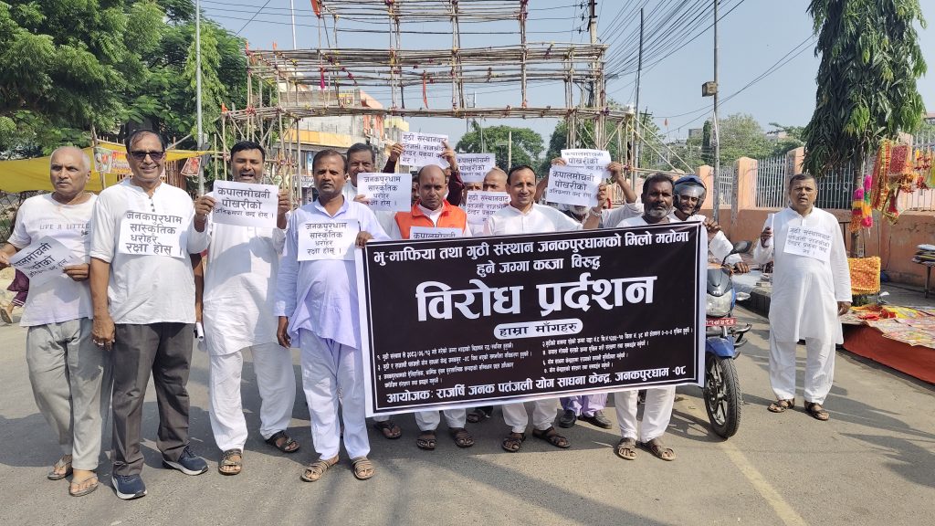 जनकपुरधामस्थित राजर्षि जनक पतंजली योग साधना केन्द्रले गुठी संस्थान जनकपुरधाममाथि भुमाफियासँग मिलेमतो गरी जग्गा कब्जा गर्न खोजेको आरोप लगाएको छ।