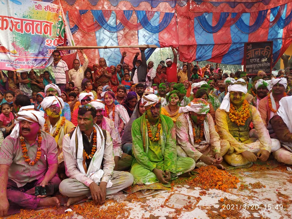 साधुसन्तहरु संगसंगै तिर्थालु, दर्शनालुहरु समेत यहाँ विभिन्न होलीको गितागानमा रमाउदै रंग अविर खेल्छन् । सहभागीहरु रंग अविर किनेर भगवान रामजानकीलाई समेत चढाउछन् । नेपाल भारतका तिर्थालुहरु भगवान रामसीताले होलीको खेलेको पवित्र भुमि कञ्चनवनमा आएर आफुहरु होली खेल्ने शौभाग्य पाएको भन्दै खुसी व्यतm गरेका छन् ।