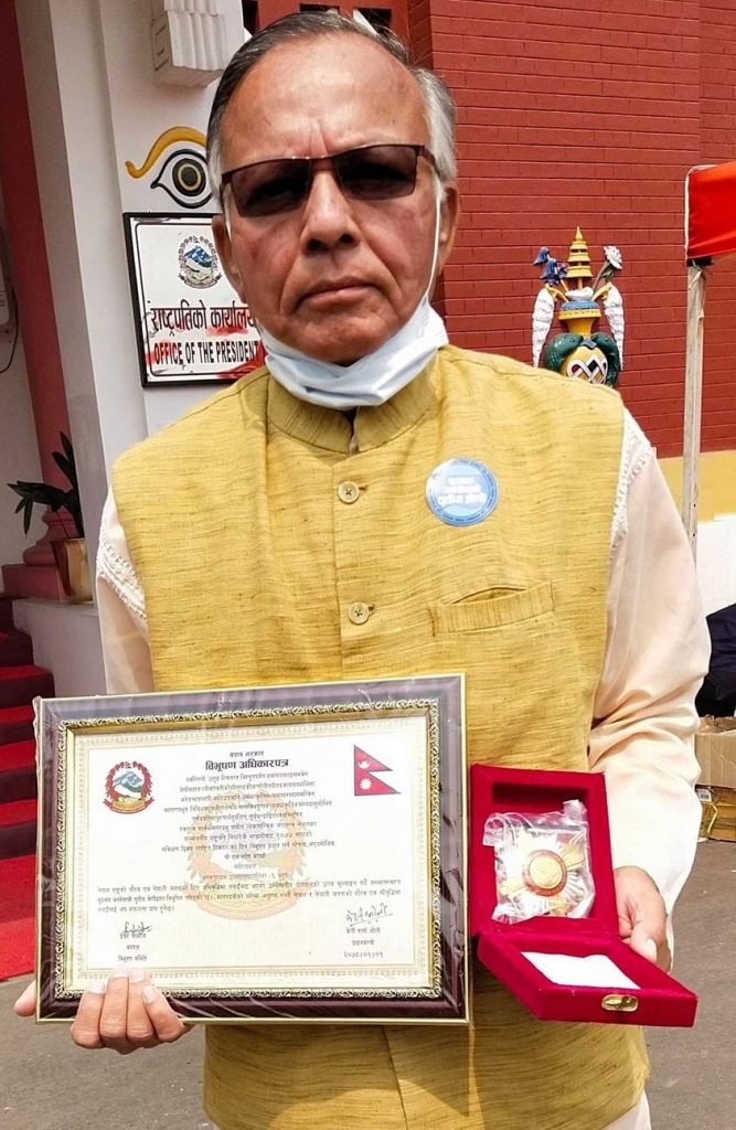 जनकपुरधाम, बैशाख ३ : मैथिली भाषा एवं साहित्य क्षेत्रमा अतूलनीय योगदानको कदर र सम्मान स्वरूप वरिष्ठ पत्रकार एवं साहित्यकार रामभरोष कापडी ‘भ्रमर’ लाई नेपालको महामहिम राष्ट्रपतिद्वारा ‘सु–प्रबल जनसेवा श्री तृतिय पदक’ विभुषित गरिएको छ ।