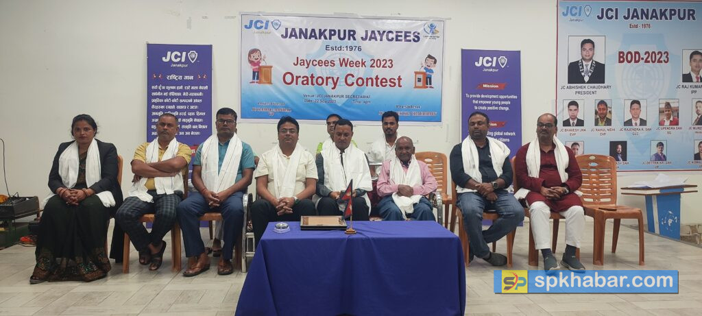 जनकपुर जेसिजका अध्यक्ष अभिषेक चौधरीको अध्यक्षतामा भएको वक्तृत्व कला प्रतियोगिताको उदघाटन सत्रमा जनकपुरधाम उद्योग वाणिज्य संघका अध्यक्ष जितेन्द्र महासेठ, बरिष्ठ उपाध्यक्ष मनिषरमण साह, महाविर युवा कमिटीका अध्यक्ष अजय गुप्ता, नेपाली कांग्रेसको नगर उपाध्यक्ष राकेशबिक्रम साह लगायतको उपस्थिति रहेको थियो । प्रतियोगितामा जनकपुरधामका १० निजि विद्यालयका विद्यार्थीहरुको सहभागिता थियो ।
