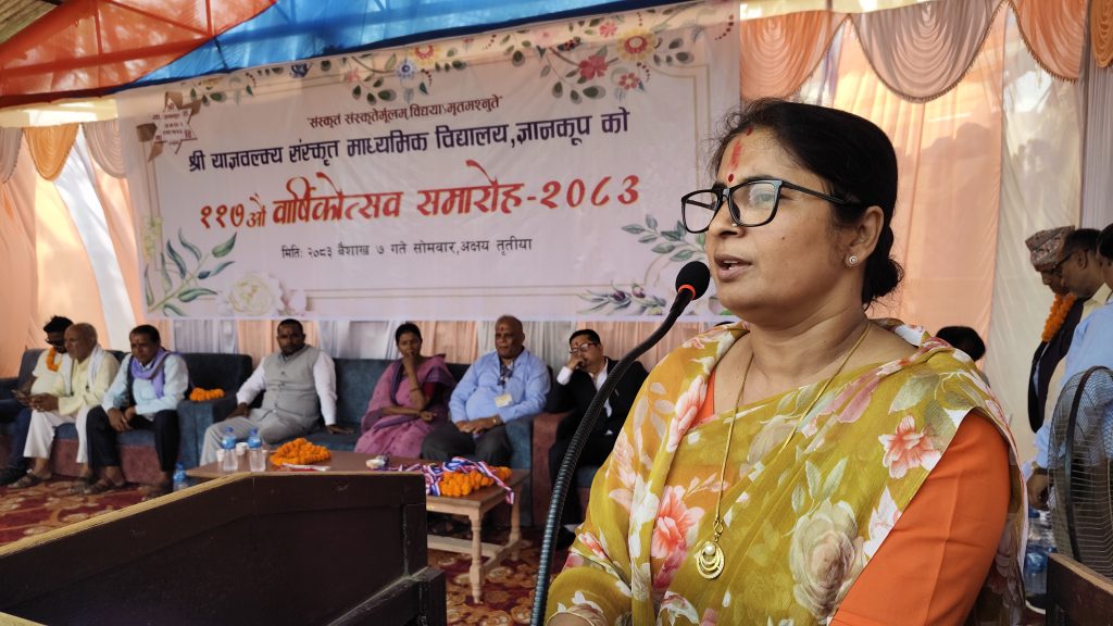 जनकपुरधामस्थित याज्ञवल्क्य संस्कृत विद्यालय, ज्ञानकुपको ११७औँ वार्षिकोत्सव कार्यक्रमलाई सम्बोधन गर्दै मन्त्री तिवारीले मधेसका अधिकांश विद्यालयमा शिक्षक अभावका कारण शिक्षा क्षेत्र अपेक्षित रूपमा सुधार हुन नसकेको बताइन्।