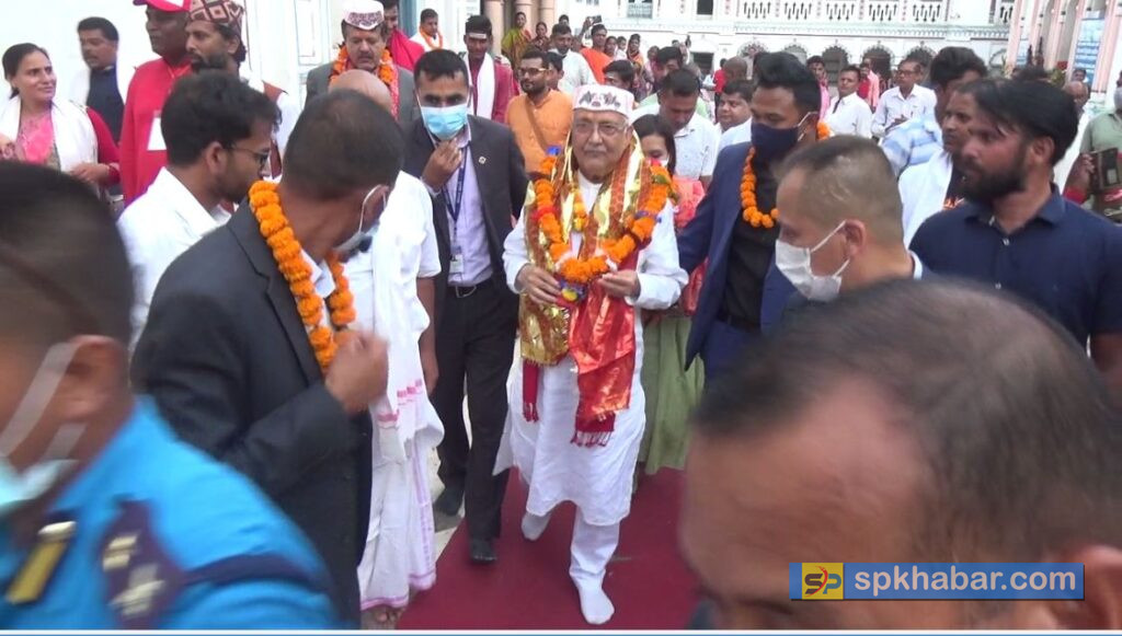 जनकपुरधाम, भदौ २७ : नेकपा एमाले अध्यक्ष केपि शर्मा ओलीले मधेशको राजधानी जनकपुरधाम स्थित प्रसिद्व श्री जानकी मन्दिरमा विशेष पुजापाठ गरेका छन् । जनकपुरधाममा आयोजित विभिन्न कार्यक्रम र सभामा सहभागि भइसकेपछि ओली सिधै मन्दिर पुगेर विशेष पुजापाठमा सहभागि हुदै दर्शन र प्रसाद ग्रहण गरेका छन् ।