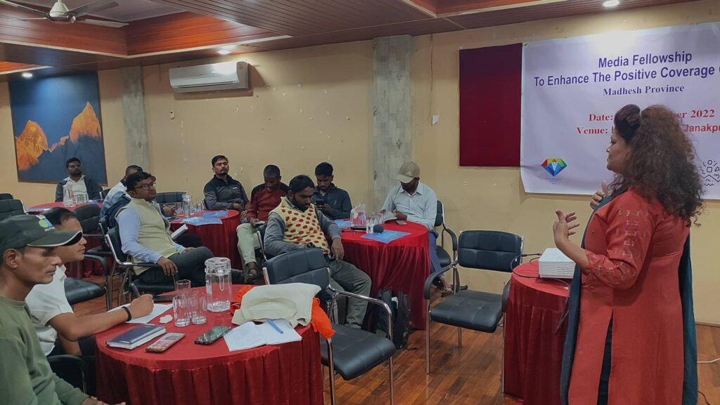 जनकपुरधाम, मसिंर ८ : स्वयोनिक तथा लैंगिक अल्पसंख्यक समुदायलाई प्रजन्न स्वास्थ्य सम्बन्धी जनचेतनाका विषयमा पत्रकारहरुसंग अन्तक्र्रिया कार्यक्रम गरिएको छ । साथै, लैंगिक अल्पसंख्यकका विषयमा पत्रकारहरूले उठान गर्न सक्ने विषयहरूबारे समेत चर्चा गरिएको छ ।