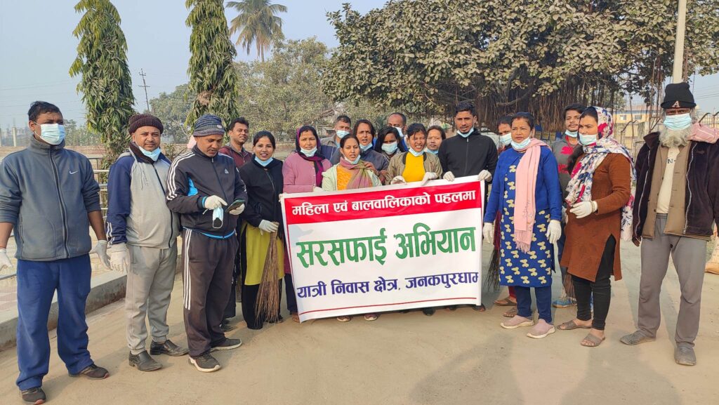 जनकपुरधाम, माघ ११ : जनकपुरधाम स्थित यात्री निवास वरपरका क्षेत्रको सरसफाइ गरिएको छ । बुधबार महिला तथा बालबालिकाहरूको पहलमा सरसफाइ गरिएको हो । यात्री निवासमा विशेष गरी भारतीय पर्यटकहरू बस्ने गरेका छन् ।
