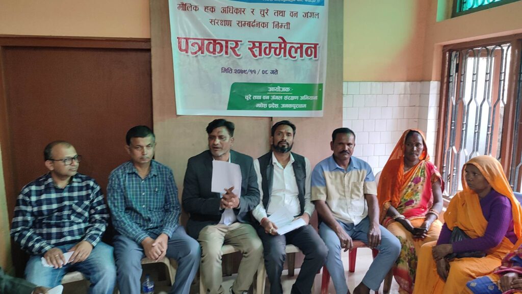 जनकपुरधाम, फागुन ८ : चुरे तथा वन जंगल संरक्षण अभियानले आन्दोलन घोषणा गरेको छ । अभियानले सोमबार जनकपुरधाममा पत्रकार सम्मेलन गरी पाँचबुँदै माग सार्वजनिक गर्दै आन्दोलनको घोषणा गरेको हो । चुरे तथा वन जंगल संरक्षणलगायत अन्य विविध विषयमा भएका सहमतिहरू कार्यान्वयन भएको भन्दै अभियानले फागुन ११ गतेबाट अनिश्चितकालनि धर्ना दिने घोषणा गरेको छ ।