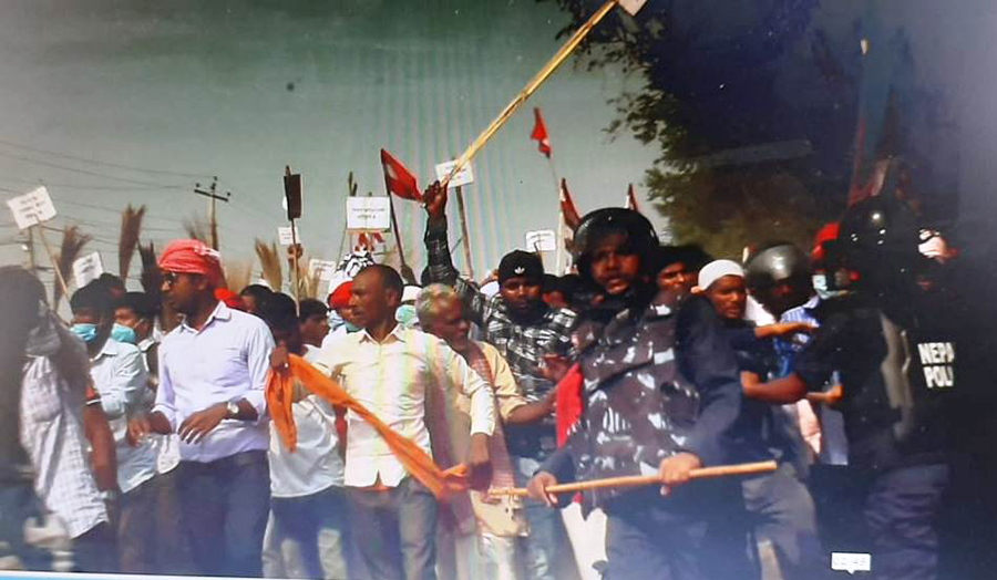 जनकपुरधाम, असोज २८ : सर्लाहीमा आफ्नो कार्यकर्ताको हत्यारालाई कारबाहीको माग गर्दै जिल्ला प्रहरी कार्यालय परिसरमा प्रदर्शन गर्न गएका नेपाली कांग्रेसका नेतारकार्यकर्ता र प्रहरीबीच बुधबार दिउँसो झड्प भएको छ । ठुलो संख्यामा आएका कांग्रेसका नेता एवम् कार्यकर्ता जिल्ला प्रहरी कार्यालयभित्र प्रवेश गर्न खोजेपछि झड्प भएको हो । ‘आउनेबित्तिकै उनीहरुले ढुङ्गामुडा गर्न थाले,’ जिल्ला प्रहरी कार्यालय सर्लाहीका डीएसपी एवं प्रवक्ता मदन कुँवरले भने, ‘उनीहरुले प्रहरी कार्यालयको झ्यालका सिसासमेत फुटाइदिएपछि बल प्रयोग गर्नुपरेको हो ।’