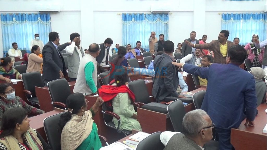 जनकपुरधाम चैत २ : प्रदेश २ को नाम र राजधानीको टुंगो लगाउन बसेको बैठक उपभोक्ता समितिको भुक्तानी र कोरोना भाइरसको भुमरीमा फँसेको छ । प्रदेशको नाम र राजधानी तय गर्न प्रदेशसभामा मतदान गर्ने तिथि मिति सर्दै गएको छ । गत फागुन २३ गते प्रदेशसभामा मतदान हुने र त्यसवाट प्रदेशले स्थाई राजधानी तथा नाम पाउने भनियो तर सो दिनको पुर्व सन्ध्यामा होली पर्व र वैवाहिक लगन रहेको कारण देखाउदै मतदानको मिति चैत १ गते तोकियो । तर त्यसका लागि कार्यविधी पारित गर्न फागुन ३० गते बसेको प्रदेश २ प्रदेशसभा बैठकमै उपभोक्ता समितिको भुक्तानीकौ सवालमा मुख्यमन्त्री लालबाबु राउत उनका सत्ताधारी दलका सांसद र मुख्य विपक्षी दल नेकपाका सांसदहरु बिच तँत मम सुरु भयो । भुक्तानीका लागि अहिलेसम्म भएका प्रयासबारे सदनलाई जानकारी दिइरहेका बेला नेकपाका सांसद् रामचन्द्र मण्डलले आक्रोश व्यक्त गरेपछि मुख्यमन्त्री राउतले सुन्ने हिम्मत राख्नुपर्ने जवाफ दिएलगतै केहीबेर सत्ता–प्रतिपक्षीबीच विवाद भएको थियो ।