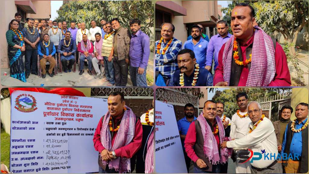 जनकपुरधाम, फागुन २१ : जनकपुरधाम उपमहानगरपालिकाको वडा नं. ७ मा सडक तथा पुल निर्माण कार्यको शिलान्यास गरिएको छ । कुल २१ लाख ३५ हजार ६ सय १ रुपैयाको लागतमा पुर्वाधार विकास कार्यालय जनकपुरधामले निर्माण गर्न लागेको २ सय १३ मिटरको जिरो माइलदेखि दक्षिण कामेश्वर शर्माको घर हुदै दिनानाथको घर सम्मको सडक निर्माण कार्यको एक कार्यक्रमका बिच प्रदेश सांसद परमेश्वर साहले शिलान्यास गरेका छन् ।