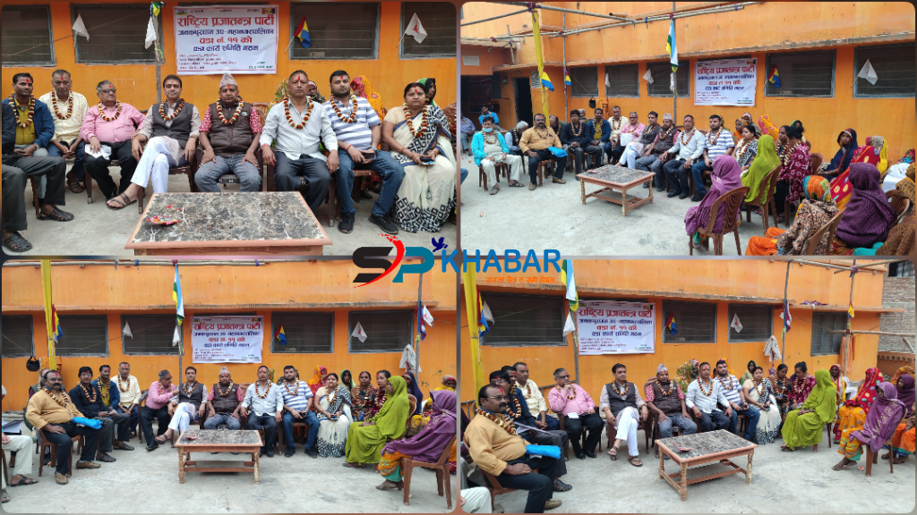 जनकपुरधाम, फागुन २९ : राष्ट्रिय प्रजातन्त्र पार्टी (राप्रपा) ले जनकपुरधाम उपमहानगरपालिका वडा नं. ११ स्तरीय वडा समिति गठन गरेको छ । पार्टीको धनुषा जिल्ला अध्यक्ष रामचन्द्र यादवको अध्यक्षतामा वडा स्थित श्री मनकामनासिद्व हनुमान मन्दिरको प्राङ्गणमा आयोजित वडा भेलाले दिलिप कुमार साहको अध्यक्षतामा २१ सदस्सीय वडा समिति गठन गरेको छ ।