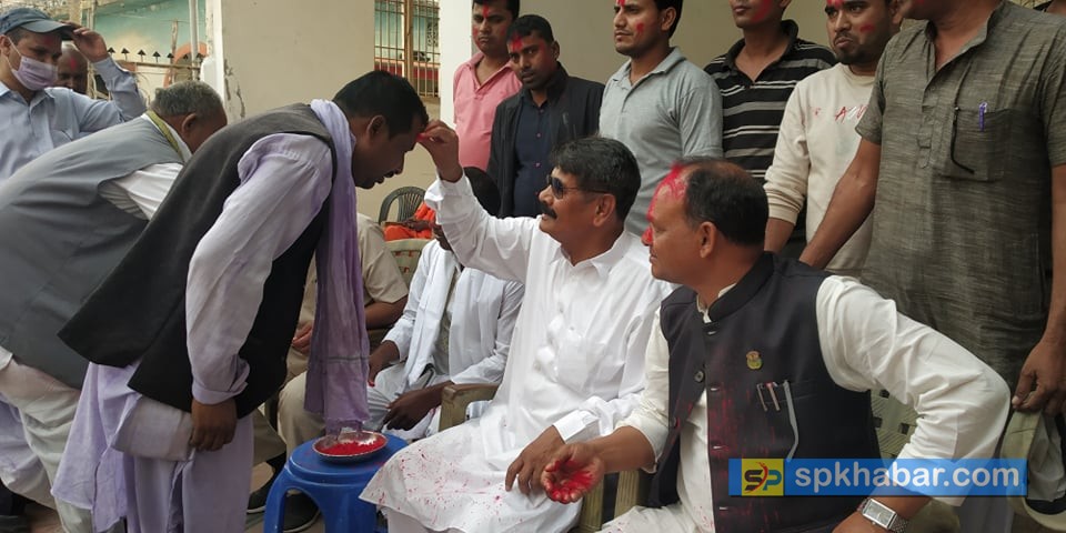 जनकपुरधाम, चैत १५ : समाजसेवी तथा श्री जानकी आँखा अस्पतालका अध्यक्ष गंगाराम यादवले होली मिलन समारोहको आयोजना गरेका छन् । पुलचौक स्थित आफनो निवासमा आयोजना गरेको होली मिलन समारोहमा प्रदेश सांसद रामचन्द्र मण्डल, विदेह नगरपालिकाका प्रमुख वेचन दास, एमालेका नेता भोला साह सहित क्षेत्र नं. २ र ३ का एमालेकर्मीहरु युवा अगुवाहरुको उपस्थिती थियो ।