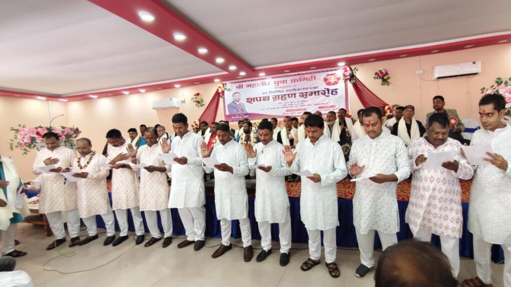 श्री महाविर युवा कमिटीको नवनिर्वाचित कार्यसमितिका पदाधिकारीहरूले पदभार ग्रहण गरेका छन्। शुक्रबार आयोजित पदभार तथा शपथग्रहण समारोहमा नवनिर्वाचित अध्यक्ष दिपककुमार साहसहित ११ सदस्यीय कार्यसमितिका पदाधिकारी र सदस्यहरूले शपथ लिएका हुन्।