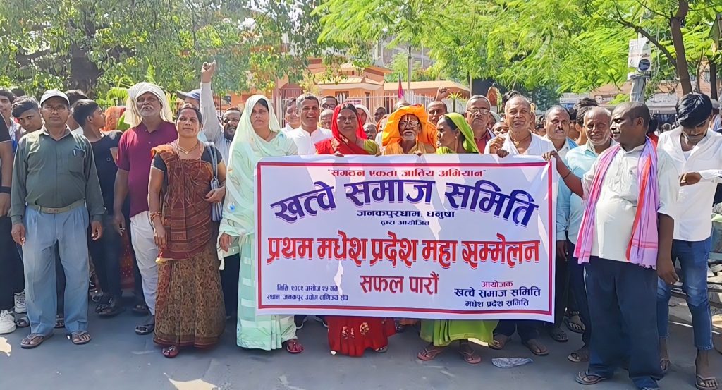 खत्वे समाज समितिको मधेस प्रदेश समितिले आफ्नो जातिलाई शासन व्यवस्थाका विभिन्न निकायमा समानुपातिक रुपमा सहभागी गराउन माग गरेको छ।